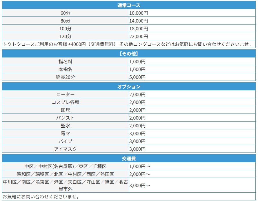 料金システム | 名古屋 デリヘル 『えっちなカノジョと濃厚KISS』
